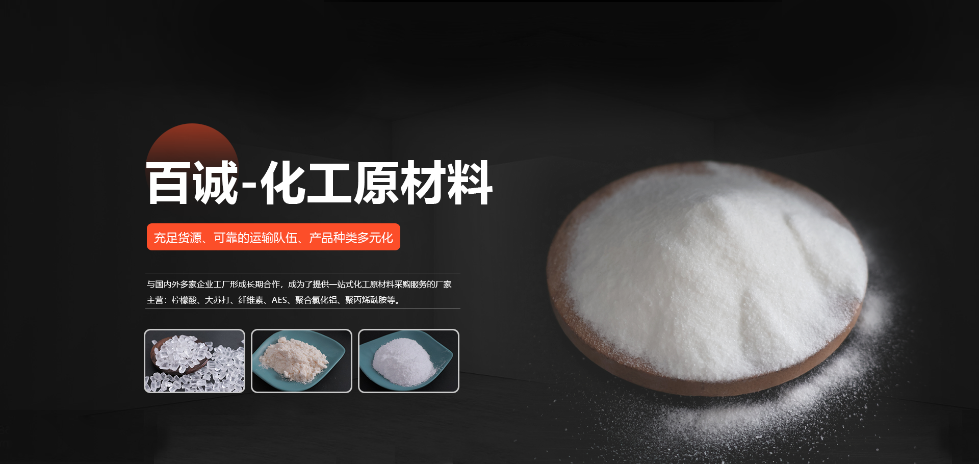 成立于山東的濰坊百誠(chéng)化工有限公司多年來(lái)與國(guó)內(nèi)外多家企業(yè)工廠 形成長(zhǎng)期合作,形成了競(jìng)爭(zhēng)力的化工原材料供應(yīng)、銷售和服務(wù) 渠道,主營(yíng):大蘇打、葡萄糖、檸檬酸、纖維素、消泡劑、AES等。